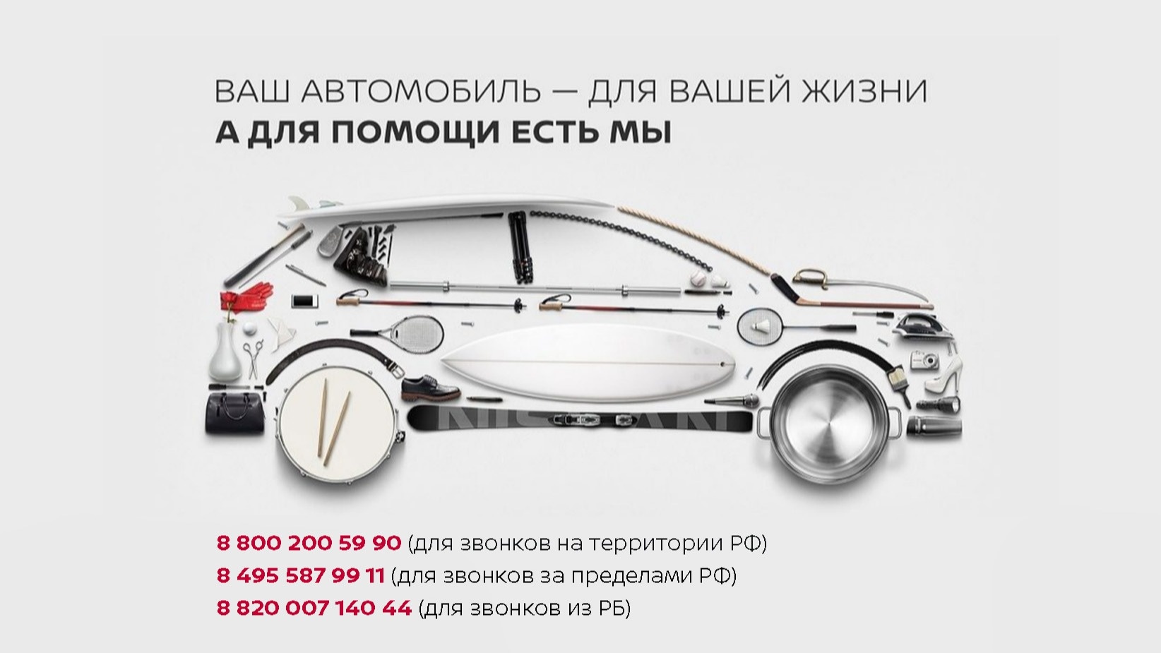 Почувствуйте спокойствие и уверенность за рулем Nissan. Просто позвоните нам, и мы сделаем все возможное, чтобы решить проблемы максимально быстро и комфортно. Служба работает круглосуточно и абсолютно бесплатно!